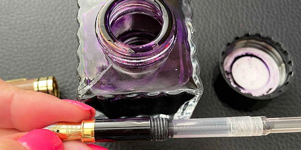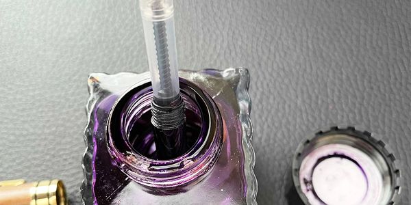 Once the ink is in the converter, remove nib from bottle, clean excess ink with a dry cloth and screw nib and converter back into pen barrel.